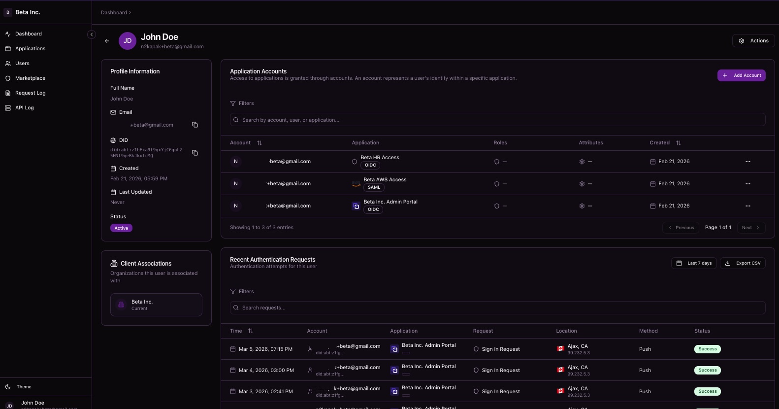 User management has been consolidated into a single view: one screen shows you every application a user has access to, every device they’ve registered, and their current account status. Provisioning new users is faster. Suspending or terminating accounts is cleaner. And for organizations managing multiple applications, a new application-centric view shows you who has access to what, at a glance.